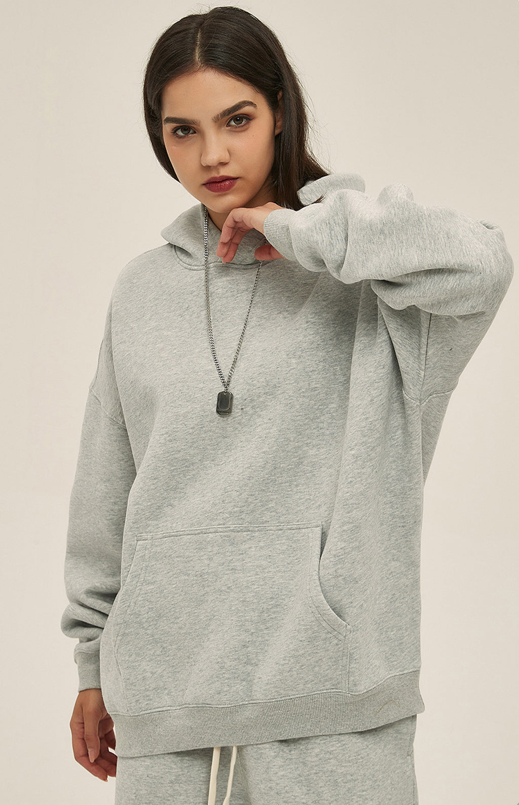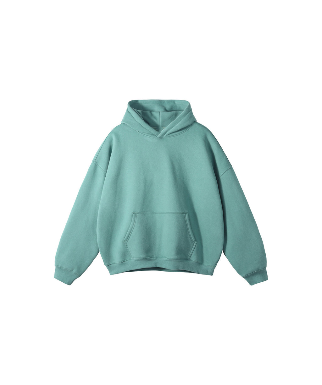 Basic hooded sweatshirt. Solid color design throughout.