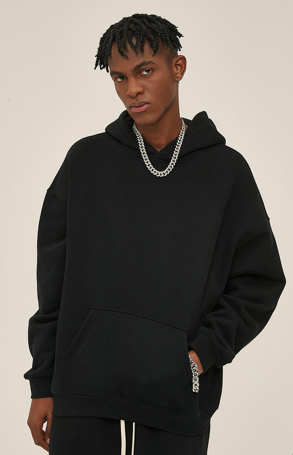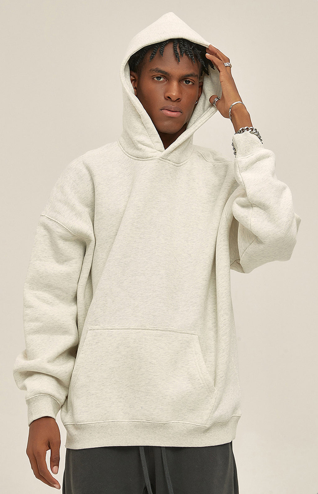 - Hood with drawstring